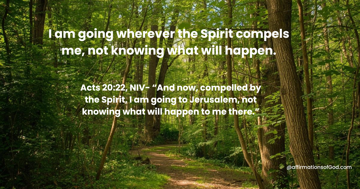 Acts 20:22, NIV- “And now, compelled by the Spirit, I am going to Jerusalem, not knowing what will happen to me there.”